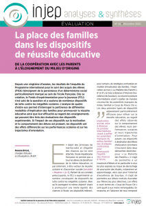 DECEMBRE 2020 • Publication de l’INJEP « La place des familles dans le dispositif de réussite éducative, de la coopération avec les parents, à l’éloignement du milieu d’origine »